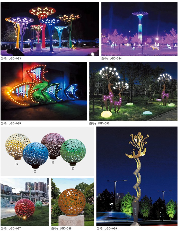 裝飾型景觀燈飾產(chǎn)品。設(shè)計(jì)風(fēng)格或抽象前衛(wèi)如藝術(shù)雕塑,或仿真寫實(shí)如自然常態(tài)。在展示現(xiàn)代精美制造工藝同時(shí),又融入多種具有一定地方或民族文化特式的元素,即可美化亮化環(huán)境,又能成為- -座城市一個(gè)地區(qū)一方民族文化的象征。無(wú)論是大型文化廣場(chǎng)還是時(shí)尚建筑群落都有他適合的道理。極具觀賞和使用價(jià)值。