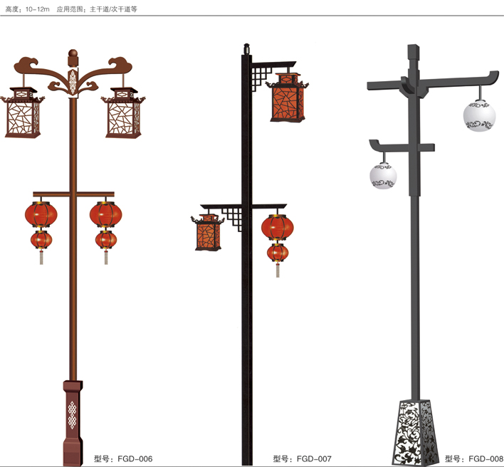 仿古燈結(jié)構(gòu)簡潔,外形美觀流暢,主要應(yīng)用于城市道路,古鎮(zhèn),景觀亮化,旅游景區(qū),公園庭院,廣場照明及亮化裝飾。仿古燈設(shè)計自然常態(tài),在展示現(xiàn)代精美制造工藝的同時,又融入多種具有一定地方或民族文化特色的元素,即可美化亮化環(huán)境,又能成為一座城市一個地區(qū)一方民族文化的象征。無論是旅游景區(qū)還是園林古鎮(zhèn)都有他適合的道理極具觀賞和使用價值。