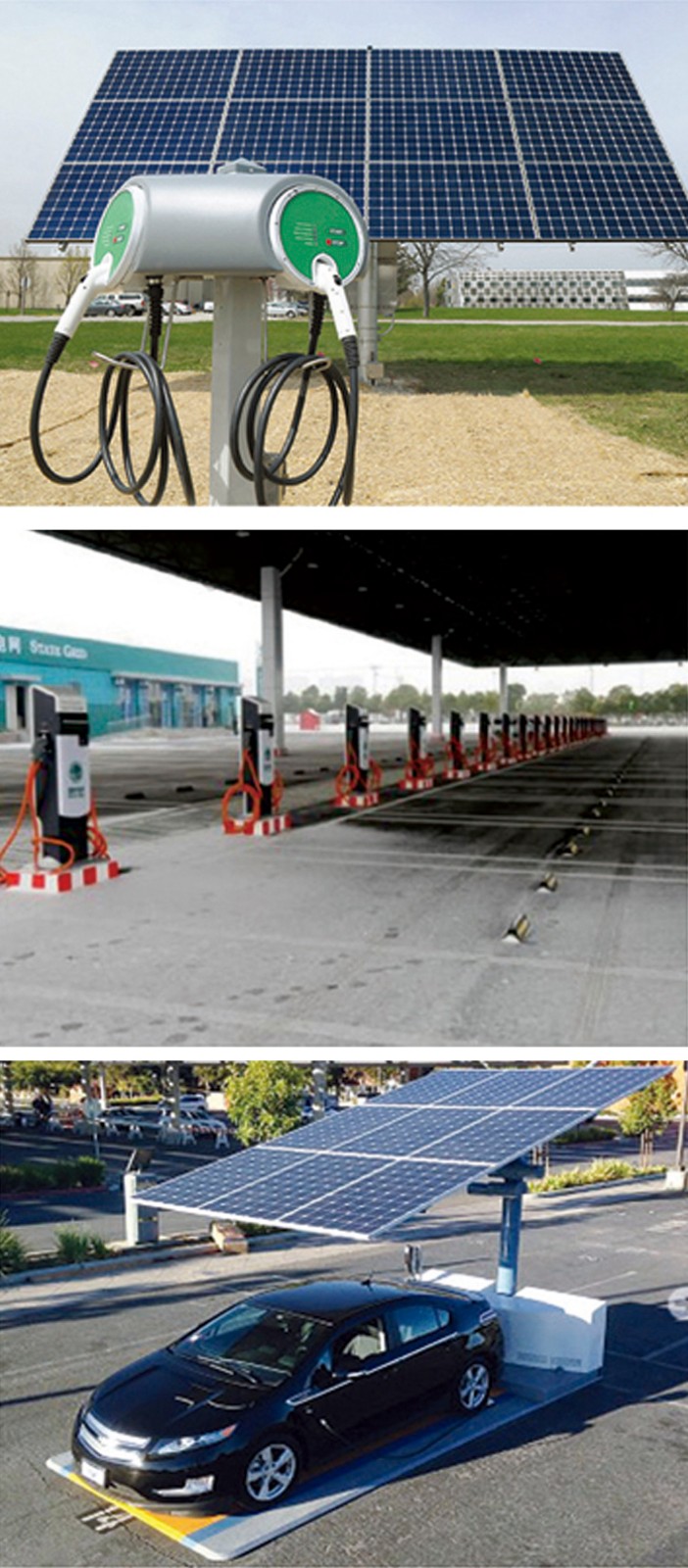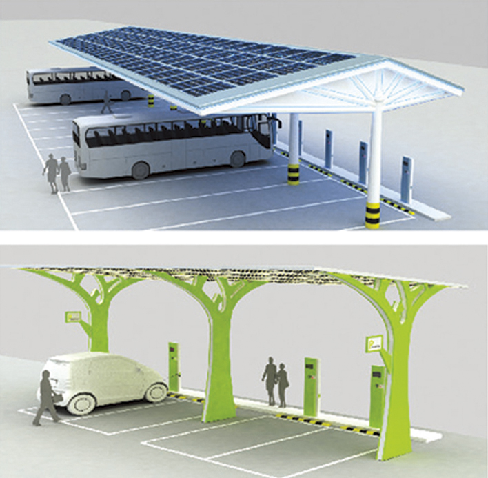 太陽能充電站系統(tǒng)是由光伏組件.逆變器、直流充電機(jī)、直流充電樁、交流充電樁、計費(fèi)系統(tǒng)、電動車用蓄電池等組成。當(dāng)電動車安裝有車載充電機(jī)時,可通過交流充電樁對其進(jìn)行充電。當(dāng)電動車沒有安裝車載充電機(jī)時,通過直流充電樁對其充電。而來不及充電的客戶還可以通過更換蓄電池來繼續(xù)行駛。